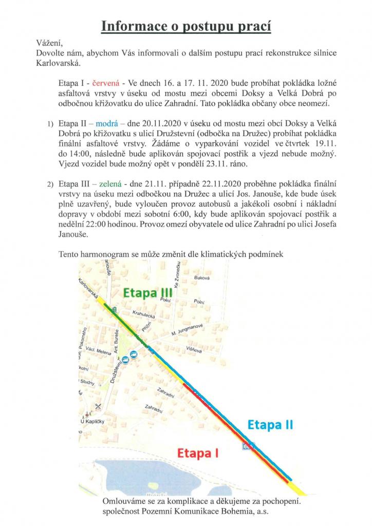 Informace o postupu prací v ul. Karlovarská
