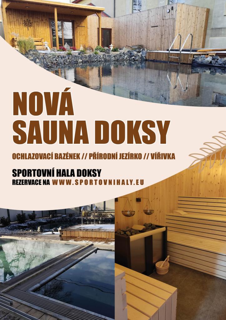 Oznamujeme, že nová sauna, která se nachází ve sportovní hale Doksy je již otevřena pro veřejnost. Úterý - ženy, čtvrtek - muži, ostatní dny pouze na rezervaci.